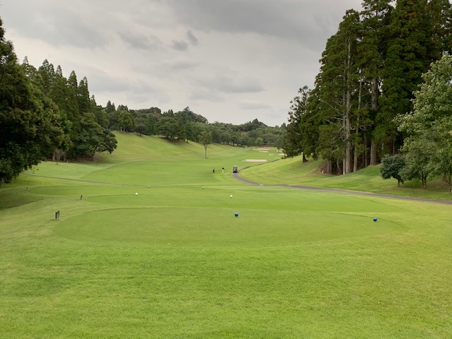 さて、東、アウトから2サムで進行します。トーナメントティ7,324yは流石に恐れをなし、ブラック7,107yで進行します。