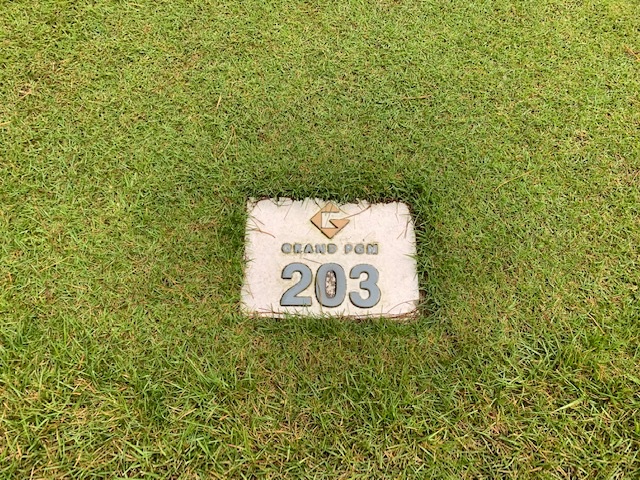 6番206yショートは、風が強くドライバーで打つも超右へ。隣のホールのややこしい位置。8アイアンのローボールで上手く打つ。カラー付近まで運び、なんとかボギーにしようと奮闘するが、寄らず入らずダボ。