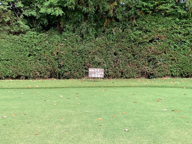 11番532yロングは、ドライバーは竜巻球。木の根っこ付近。8アイアンで真横へ。3wで打つも全然飛ばず。5オンのダボ。見事なアプでT.Kさんがパー奪取。やるな。