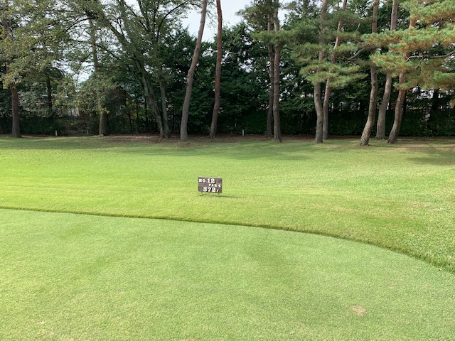 12番372yミドルは、ドライバーは今度は右へ。8アイアンで斜め前方へ。52度で3オン。ボギー。