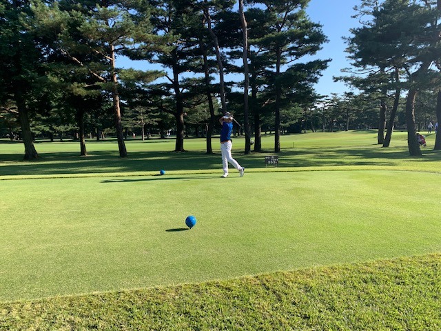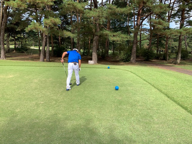 16番127yショートは、PWでピン右4mに1オン。無難にパー。同じくナイス1オンからF.MさんとE.Yさんも無難にパー。