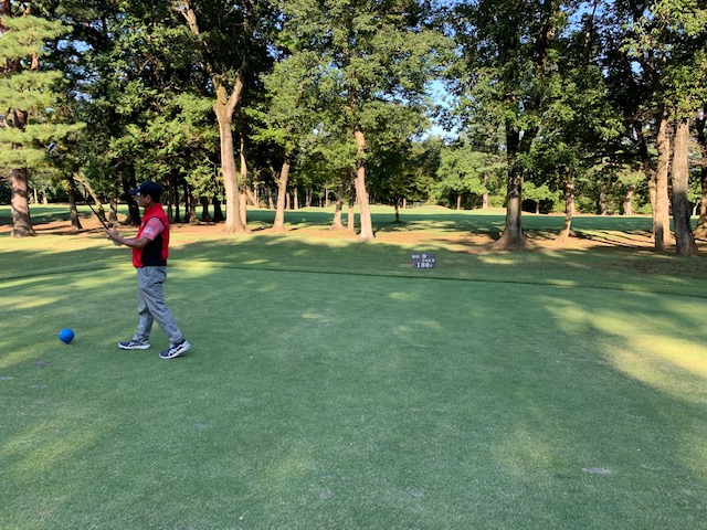 10番409yミドルは、ドライバーは竜巻球。林から6アイアンで斜め前方へ。3打目が乗らず。ダボ。素晴らしいパター力でF.Mさんがスーパーパー。