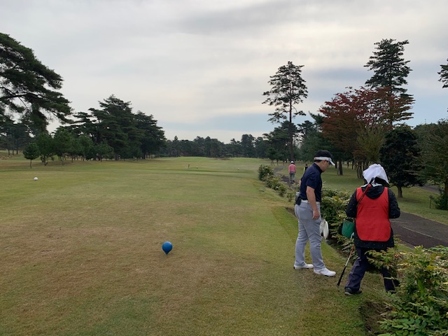 パターを少々転がして、アウトから。今日は千葉県の地主のS.Tさん、埼玉県のS.Oさん、神奈川県のT.Tさんと廻ります。