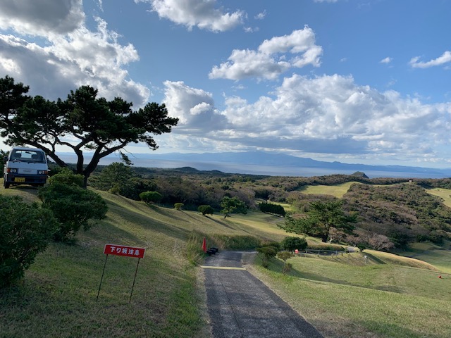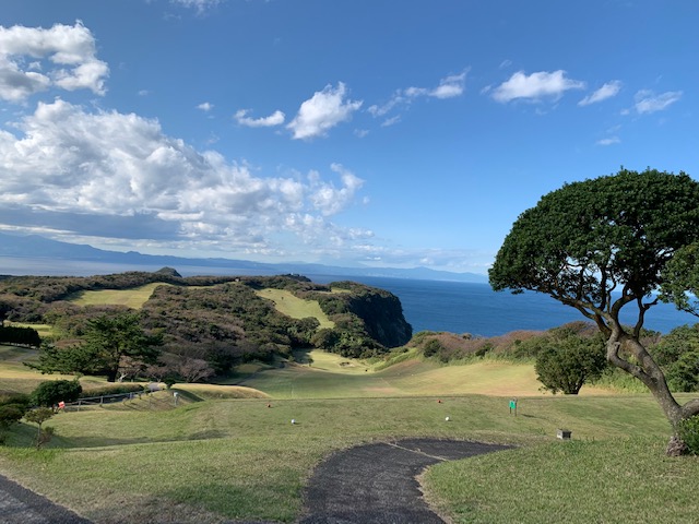 今日は、我らがタケ小山プロと東京都のH.Tさん、そして民宿朝海館のS.Kさんとのゴルフです。現在、大島ゴルフは地元の方が入られないとプレーが不可の為、S.Kさんに同行頂きました。