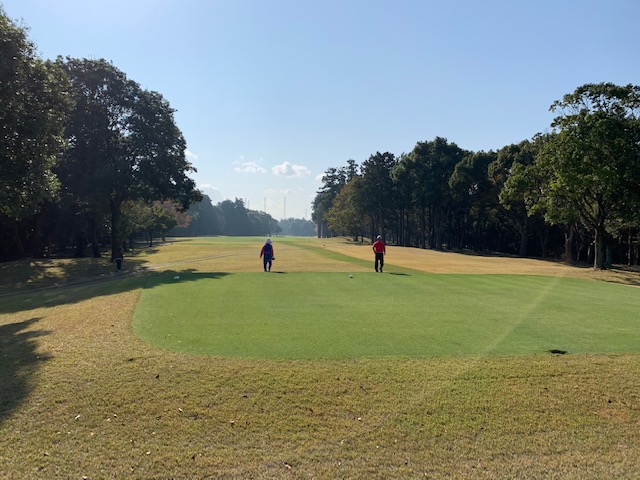 その後、下に降りてパターを転がして、いざ、アウトから。今日は福田社長と千葉県のS.Tさん、神奈川県のK.Yさんとのペアリングです。