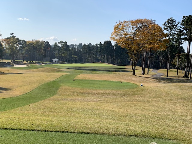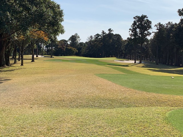 2番309yミドルは、3uで打つも右ラフへ。PWでピン左13mに2オン。無難にパー。