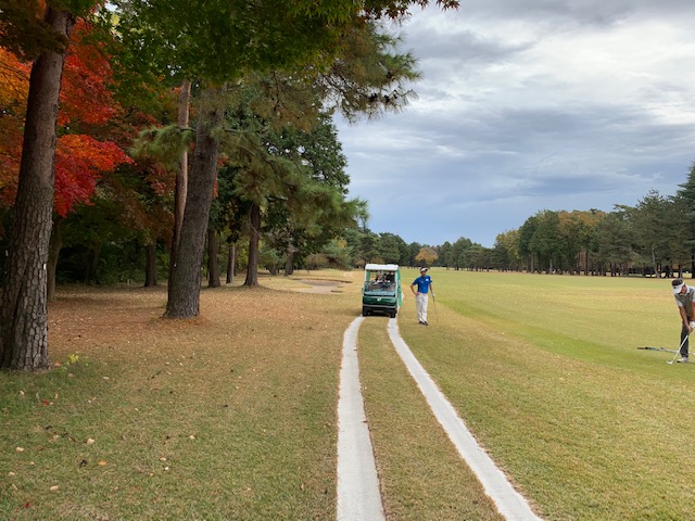 その後、集合写真を撮り、西アウトへ。10月から西コースにはカートが入りましたので、今日はカートプレーです。