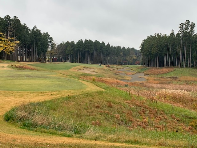 12番218yショートは、3uで打つもバンカーイン。寄らず入らず。ここをしっかり1オンさせた埼玉県のM.Tさんが無難にパー。