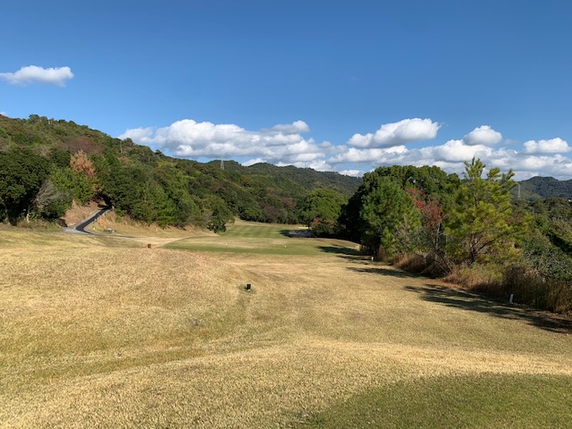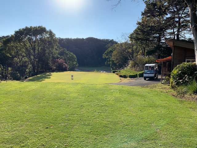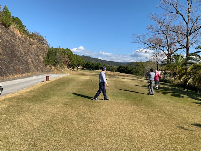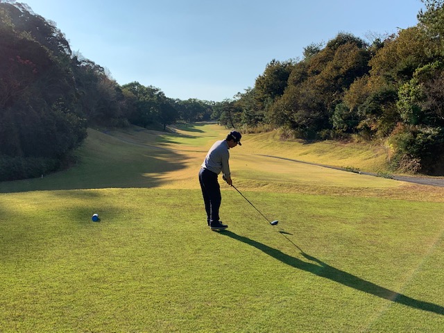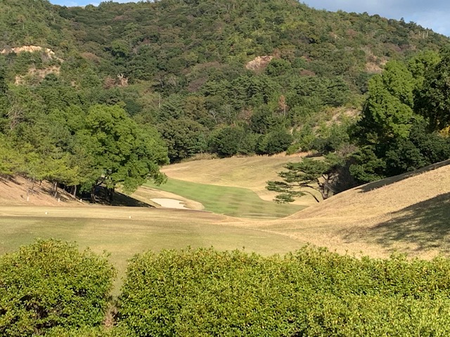 11番谷越え172yショートは、5アイアンで打つも右に外れる。見事なアプでS.Mさんが連続のパー。