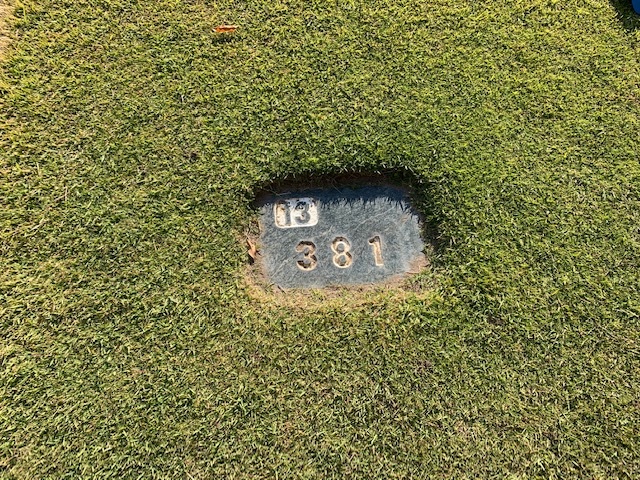 12番377yミドルは、ドライバーはショボ球で右ラフへ。残り180yから4アイアンで打つもショボ。寄らず入らず。
