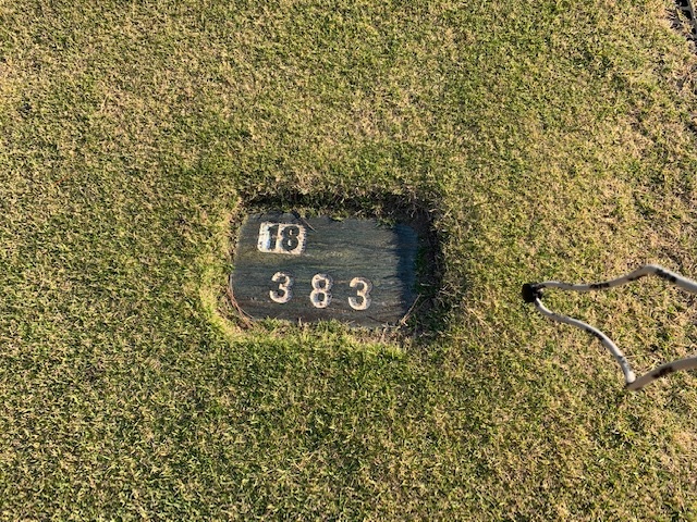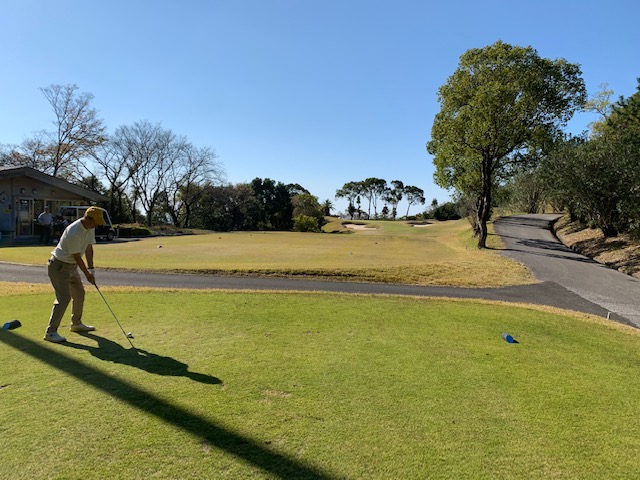 18番399y打ち下ろしミドルは、ドライバーは左ラフへ。5アイアンで打つも全然ショート。寄らず入らず。ビッグドライブからナイス2オンのS,Mさんが楽々パー。明日に繋がる連続パーで締めくくられました。