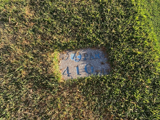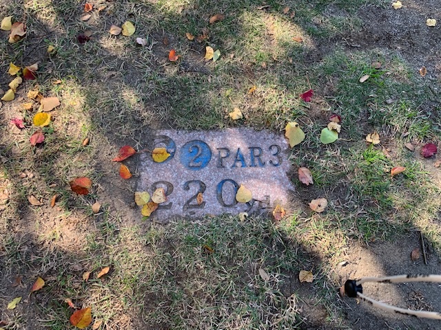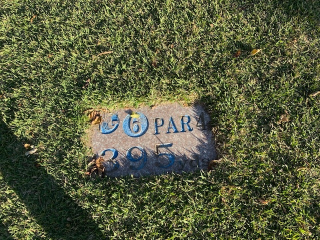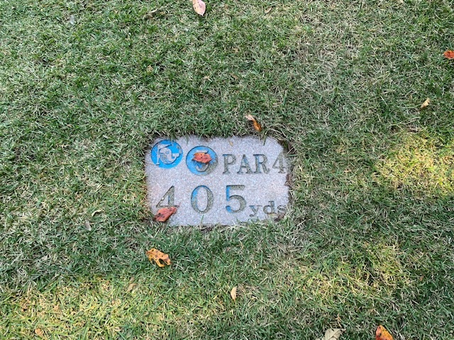 4番420yミドルは、ドライバーは左のラフへ。残り220yから3u、52度で3オン。ボギー。