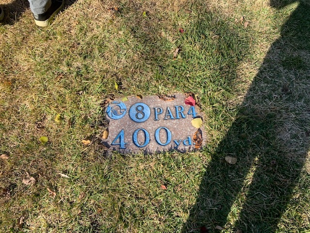 8番420yミドルは、ドライバーはアゲンストの中全然飛ばず。3uで残り80yへ。今度は52度でなくPWで打つ。なんとか2.4mに3オン。これも入らない。