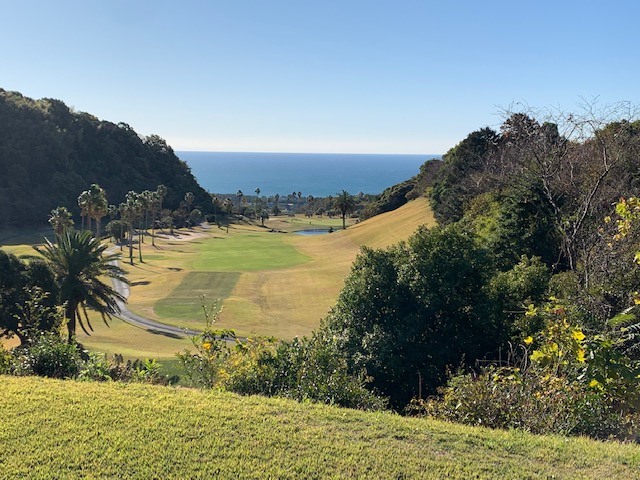 スタート時間になり、下へ降りてまいります。ここは36ホールコースで太平洋、暖流、黒潮のアウトインの36ホールコースです。トーナメントは黒潮の9ホールと太平洋の9ホールを使って開催されているとのことでした。