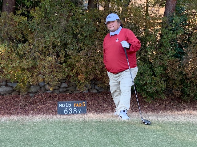 15番615yロングは、ドライバーは打ってはいけない左に竜巻球。崖下から一回で出ず。3打目でなんとかコースに。なんだかんだで7オン。9となる。ハ~。この難しいホールをなんと4オンさせて、パターも放り込んだE.Mさんがパーゲット!素晴らしい!