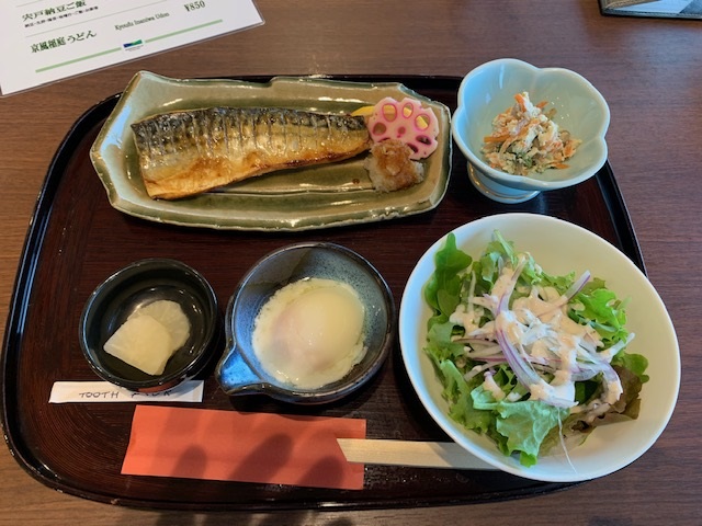到着後、まずは、レストランへ。和朝食は鯖を頂きました。鮭と鯵の3種類から選択します。その後、Y.NさんがE.Mさんとご登場。楽しく3者談議。