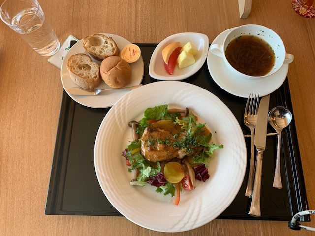 ランチは、今日もチキンの料理にしました。これがなかなか美味いんです。龍ヶ崎のランチは毎月変わるし、メニューは豊富だし、私は大好きです。