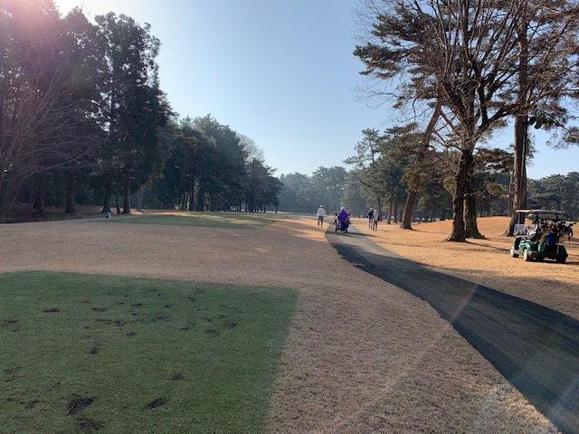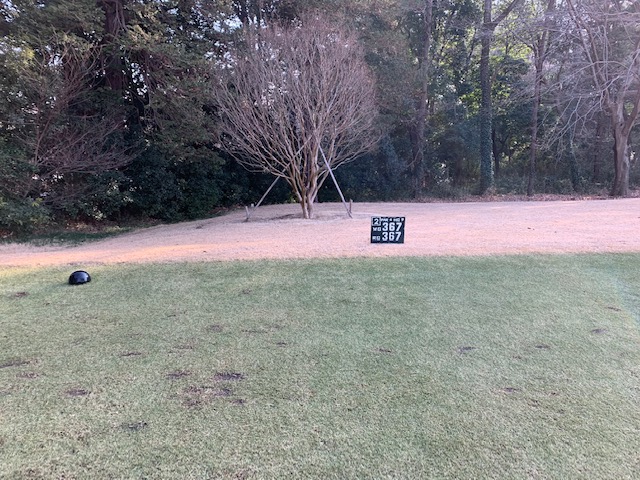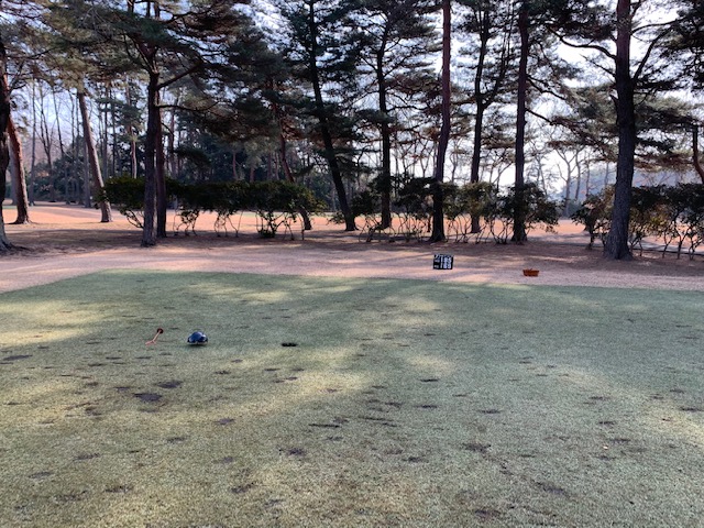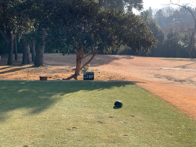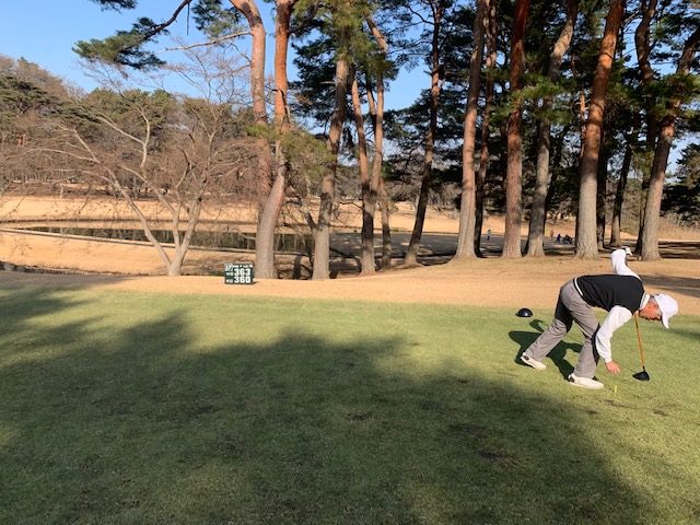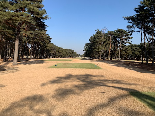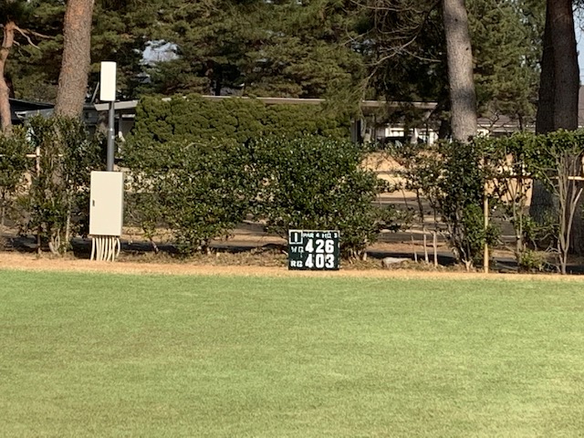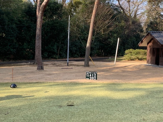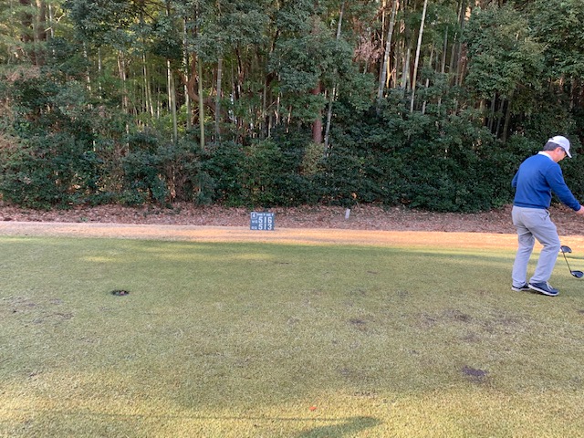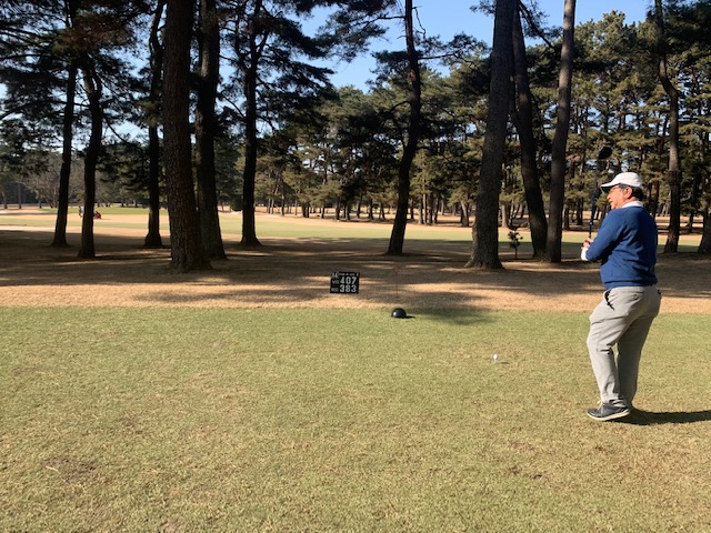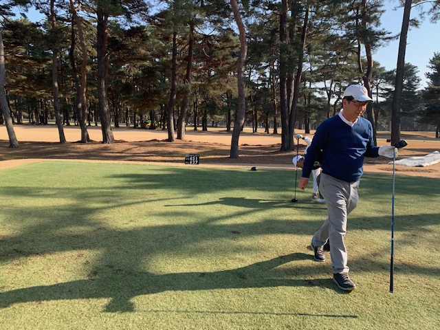 その後、東アウトからスタート。今日は某倶楽部のグランドシニアチャンプがご一緒されるので黒ティを選択。グリーンはホワイトです。