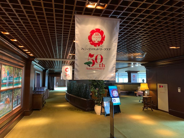 宮崎シリーズ2日目は開場50周年目のフェニックスカントリークラブです。シェラトンにはテツさんにお迎えに来て頂き、3分ほどで到着。すぐにT支配人がご挨拶にお越しくださいました。しかし、何度来ても重厚なクラブハウスで圧倒されます。フェニックスが初めてのテツさんにチャンピオンズロッカーをご案内しましたが、たいそう驚いておられました。しかし、今日はガラ~ンとしています。