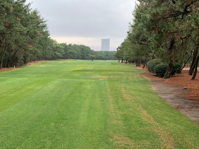 7番(16番)399y右ドッグのミドルは、ドライバーは左ラフへ。3uで打つもショート。寄らず入らず。