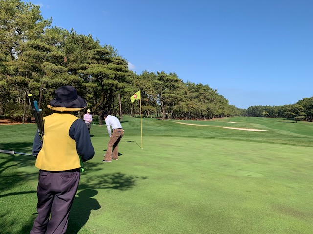 3番180yショートは、25度のuで打つもカラーに。で、ここからのパターが冴えて、なんとカップイン。宮崎シリーズ初バーディ。