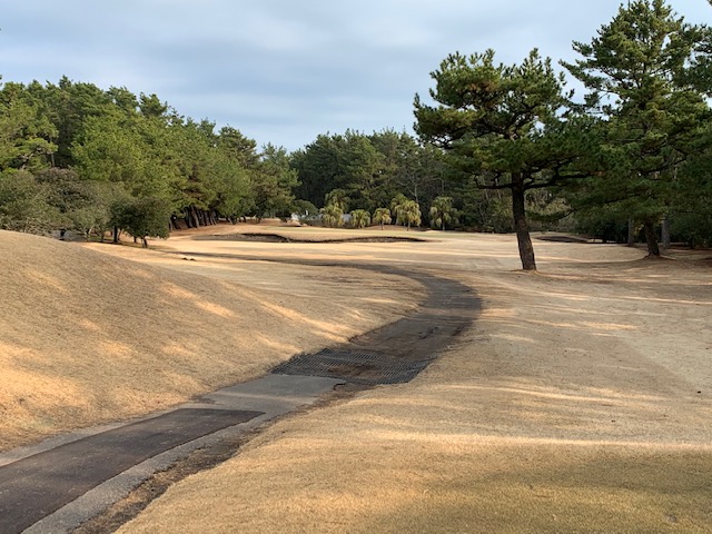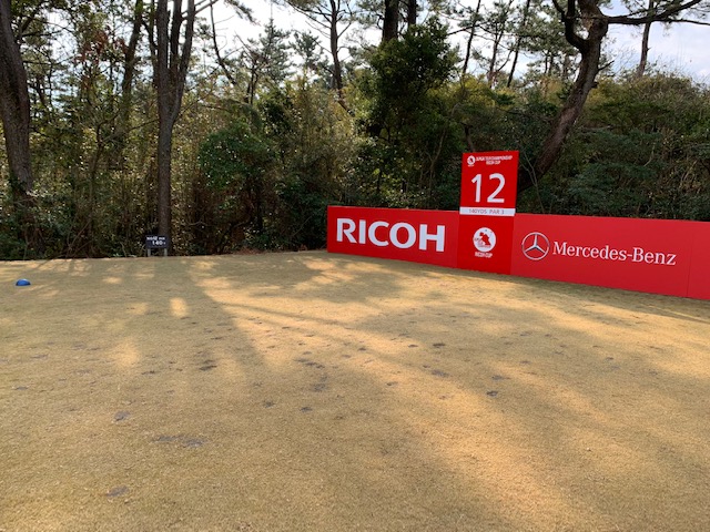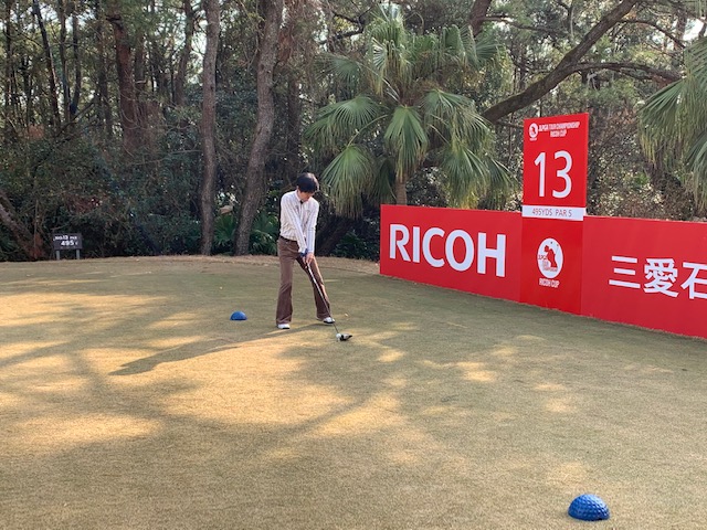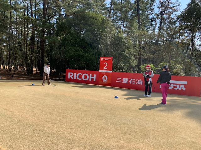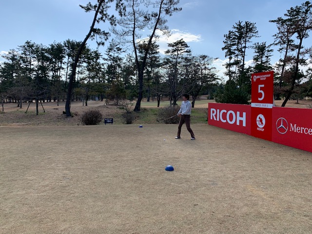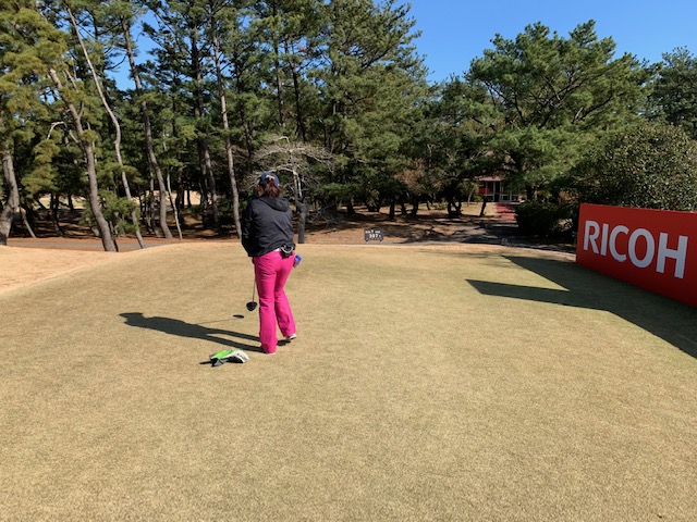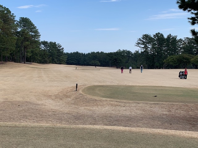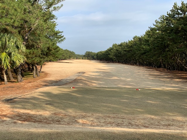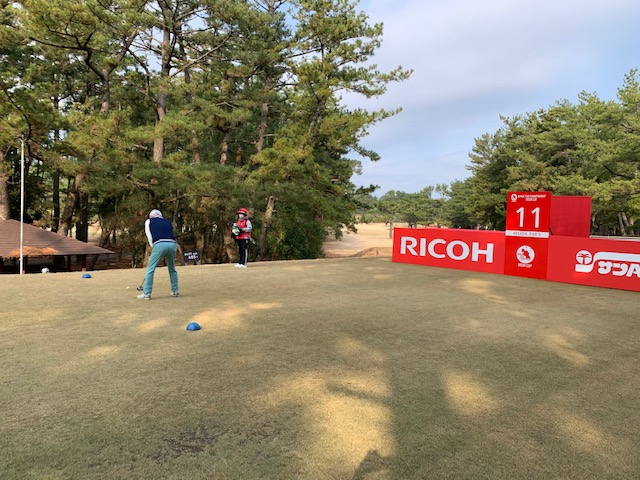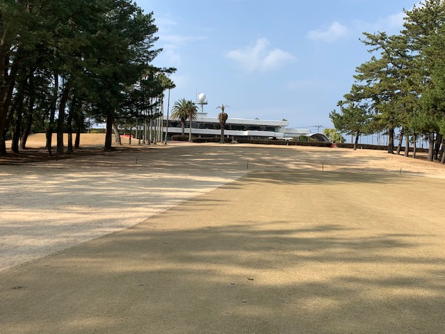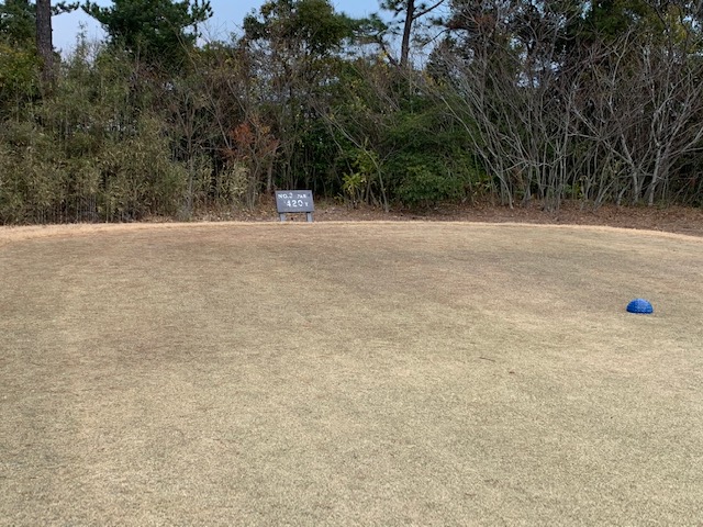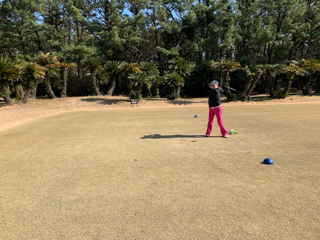 宮崎シリーズ3日目はついにマエシン初めてやって来ました、宮カンです。空港からすぐのゴルフ場で女子プロの最終戦が開催されるコースです。高麗グリーンの1グリーンで、女子プロの皆様も大変苦労されているコースです。