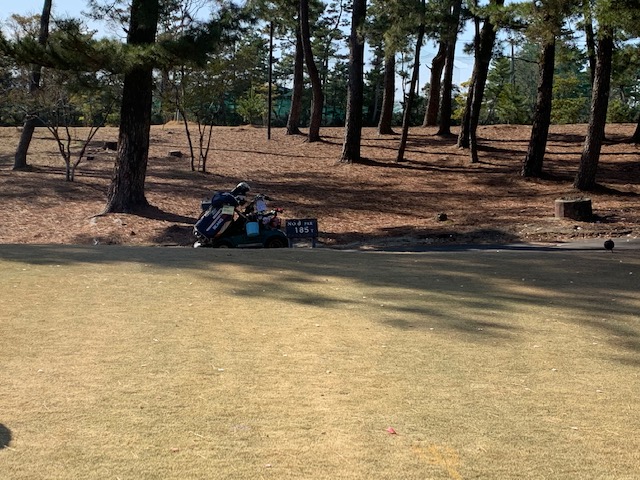 11番485yロング(マツ)は、ドライバーは右へ。5アイアンで斜め前方へ。3w、56度で4オン。ボギー。