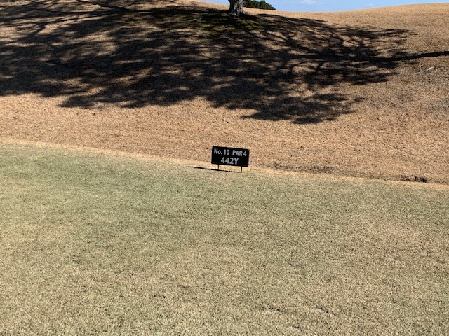 10番442yミドルは、ドライバーは右へ。3uで打つもチョロ。再び3uで打って3オン。ボギー。
