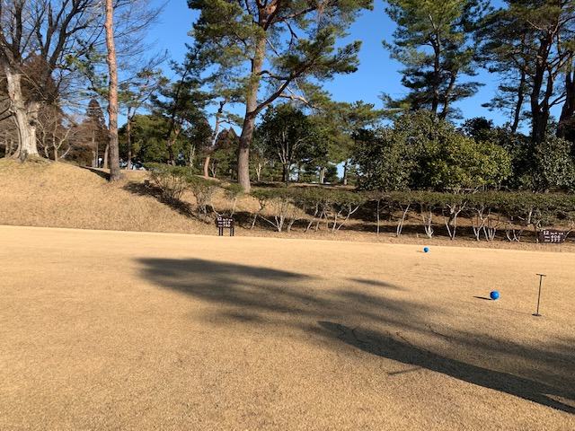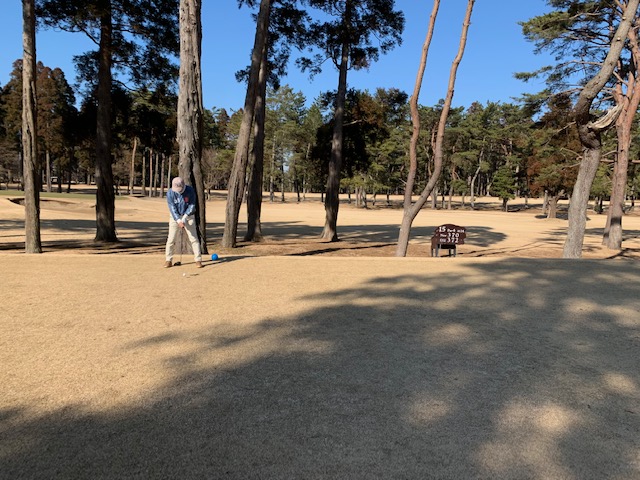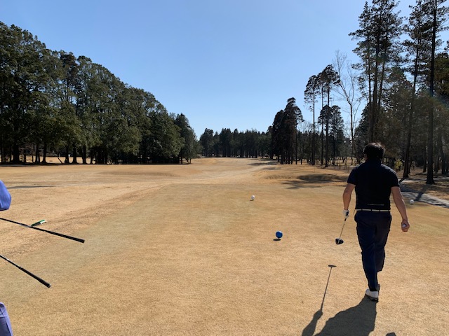 その後、パターを少々転がし、インから。東京都のS.MさんとH.Hさんと神奈川県のA.Kさんとのペアリングです。私はどなたとも初めての方です。後でA.Kさんは弊社縁の方であることを知りました。オールドグリーン、青ティで進行します。