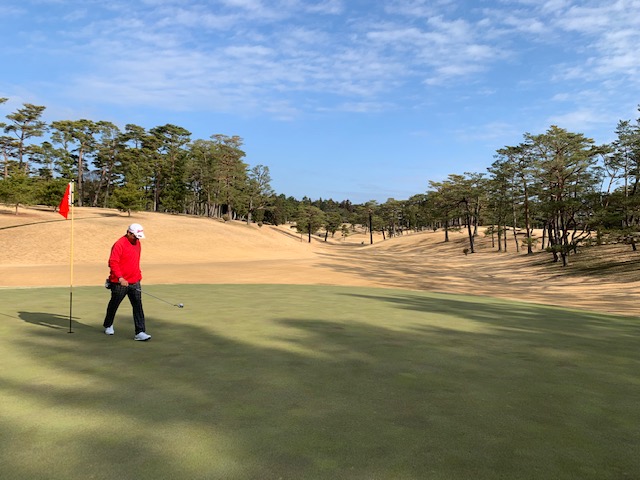 9番407yミドルは、ドライバーはまずまず。残り190yから25度のuで打つもバンカーイン。これまたエイヤで!打つと奥3mに。入らずボギー。も、明日に繋がるバンカーショットでした。素晴らしい2オンからA.Kさんが無難にパー。また、ナイスアプからK.Tさんもパー。