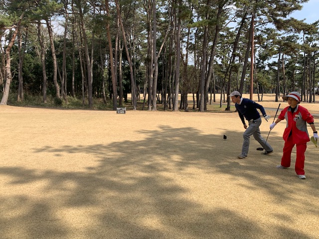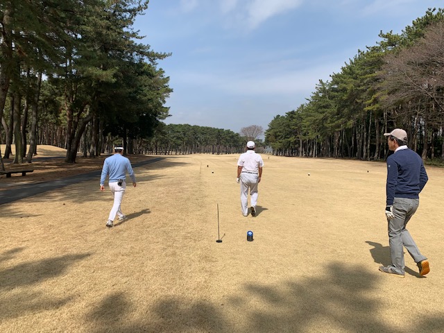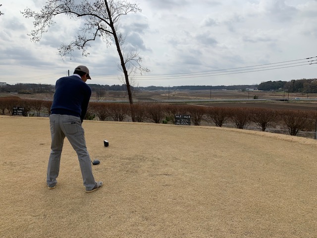 その後、東京都のK.Oさんがお越しになられ、3者談議を20分程。で、アウトから。今日は侍がプロに挑戦シリーズといつものなんでも〇ルール。高麗グリーン使用で黒ティから。