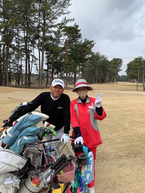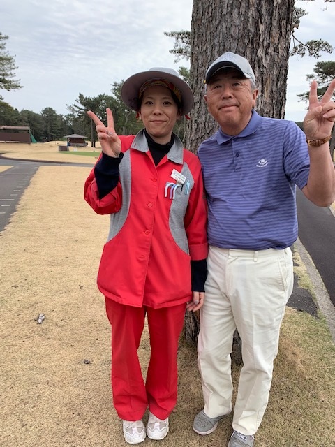 12番343yミドルは、ドライバーはまずまず。PWで1.3mに2オン。沈めてナイス鉄バーベス。1アップ。見事なアプ&パターでK.Oさんが銅竿パー。