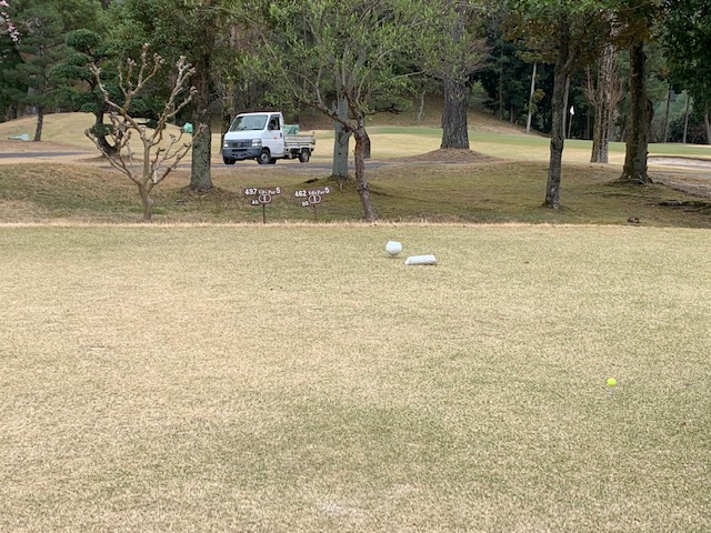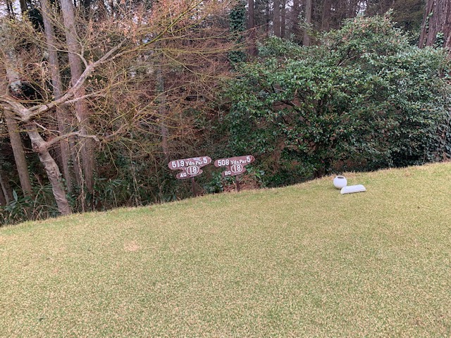 17番385yミドルは、ドライバーは右へピュー。暫定球を打つ。初球はセーフ。8アイアンでチョン出し。56度で3オン。ボギー。