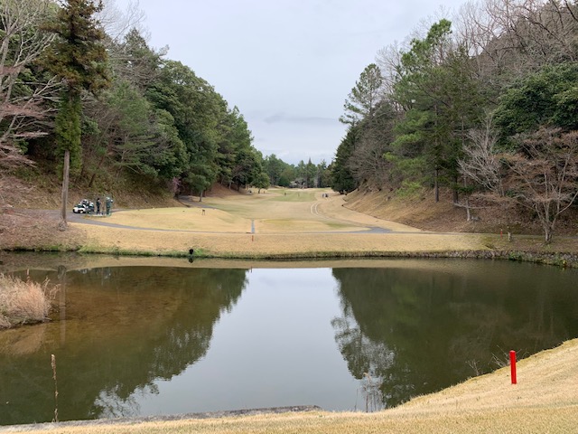 10番397yミドルは、ドライバーは左のクロスバンカーイン。残り165y打ち上げを25度のuで打つとなんとグリーンオン。無難にパー。