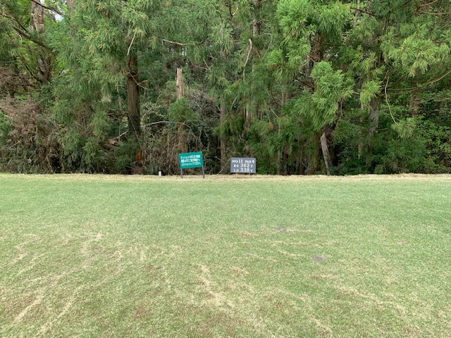 7番329yミドルは、ドライバーは竜巻球でOB。打ち直しはまずまず。PWで打つも左奥へ。3パンチで7とする。