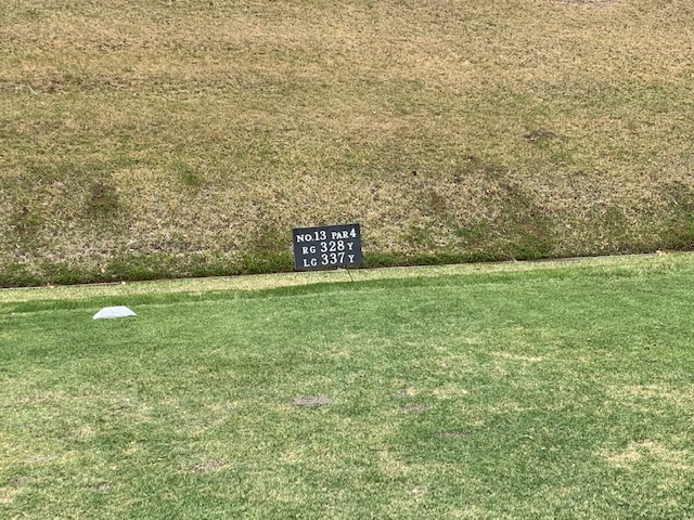 13番353y右ドッグのミドルは、ドライバーは完璧。PWで6mに2オン。無難にパー。
