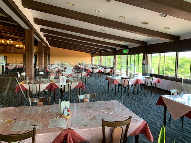 到着後、レストランでハムエッグを食しながら歓談です。で、アウトのトップスタートで参ります。今日は白ティから進行します。