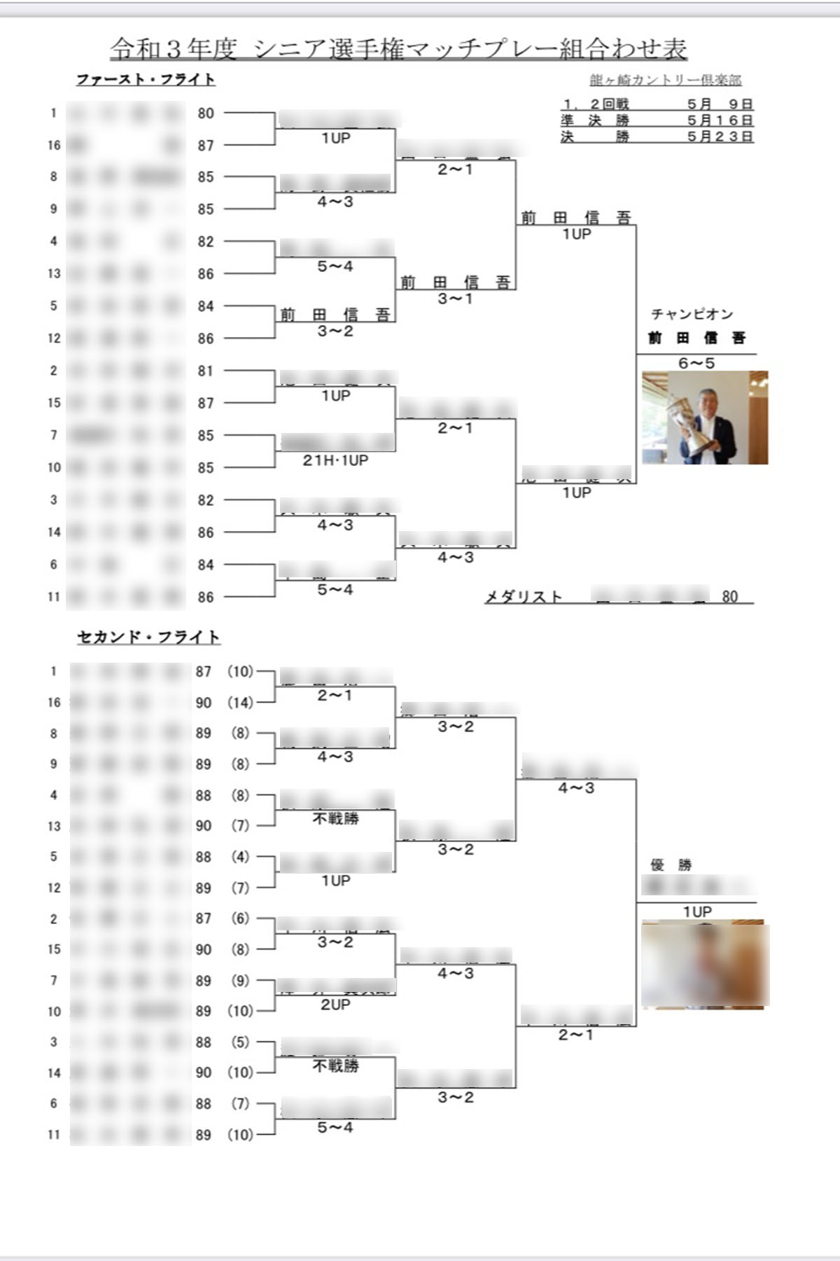 チャンピオンになって・・・勝つと全く思っていなかった。予選も通れると正直思っていなかった。その予選が悪天候で18ホールになったのが私には超ラッキーだった。トーナメントのドローもラッキーだった。結局、結果として格上の予選4位、1位、2位の方を撃破したが、振り返ってもとても事の運びがラッキーだった。準決勝、決勝と付いてくれたキャディのMさんが「前田さんはアプローチで勝利を呼び込んでいますよね」と言ったが、このシニアの4週間はアプがホント素晴らしかった。特に、準決勝の27ホール目の95yの56度と決勝19ホール目のOBギリギリからの残り50yの超難解ロブが勝利を導いたと言って良いでしょう。ゴルフやっていて今日は本当に素晴らしい一日となりました。皆様、ご声援、ありがとうございました!!!それにしても、ここ龍ヶ崎の状態は素晴らしい!!!