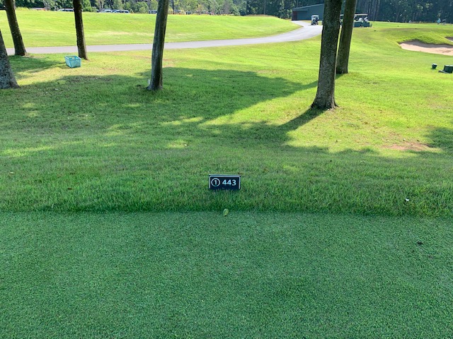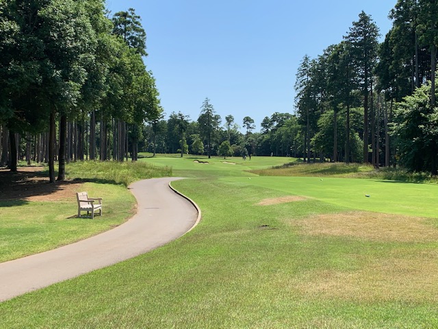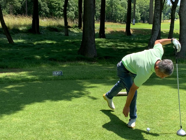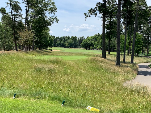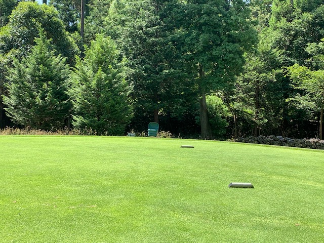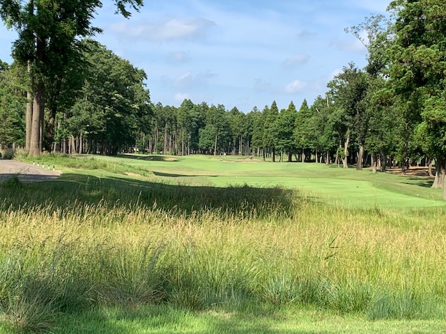 18番578yロングは、ドライバーはナイス。3wで残り88yだが大木あり。52度での転がしで手前15mに。なんとか2パットでパー。 しっかり3オンのS.Mさんも無難にパー。