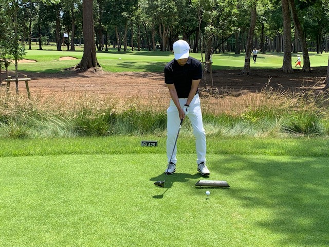 到着後、和朝食をオーダー。恐る恐る尋ねると「大丈夫ですよ」。急にご機嫌になる。パターを転がして、アウトから。後ろの組の方々にもご挨拶。で、今日は黒ティで進行します。皆様、すんません。