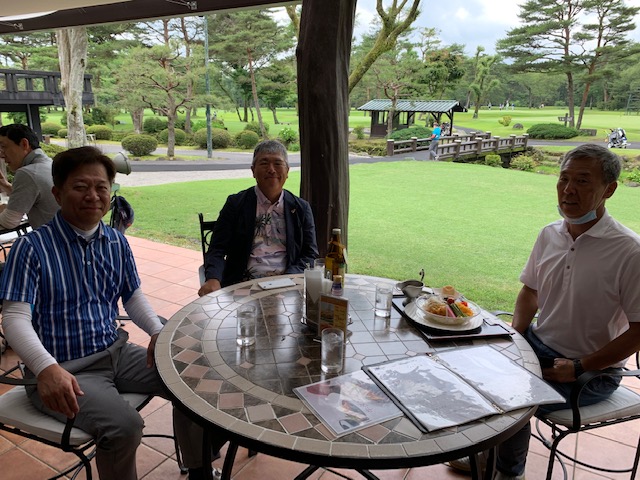 9番484yロングは、ドライバーは竜巻球。林からPWで左打ち。5アイアンでフェアウェイへ。56度で打つも手前10mに。入らずボギー。しっかり3オンのK.KさんとN.Yさんが無難にパー。で、同じく3オンしていたM.Cさんが残念。。。