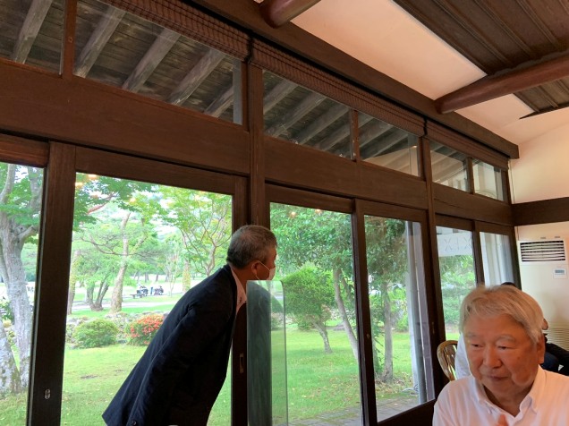 散歩を終えてハウスに向かいます。今日の朝食はハムエッグと豚汁ライスです。なかなかグーです。またまた皆様とテラスで美味しくいただきます。