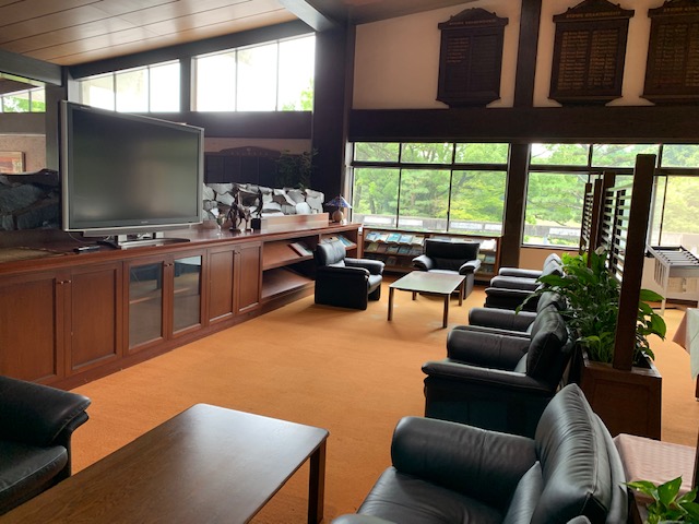 まずは、着替えてレストランへ。あ、そうそう、私はキャディバッグを随時持っていくので関係ありませんが、宅急便組の方々のロッカーにはシューズがすでにロッカーインされていました。素晴らしいです。