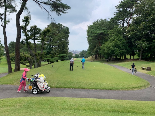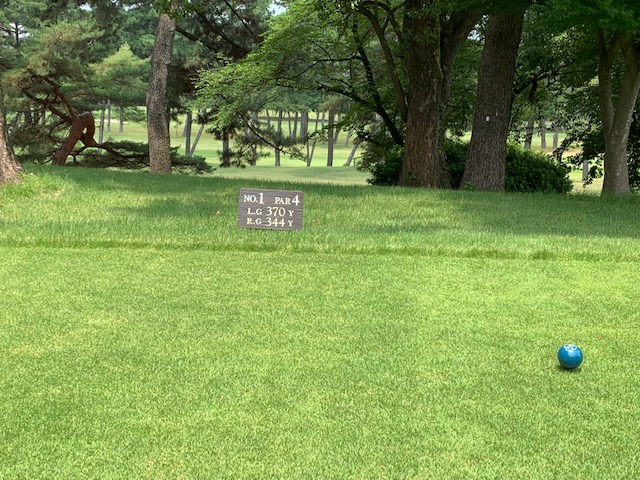 さて、1番から。私は青ティで進行します。私は2組目で会員の縁のT.Mさん、K.Tさん、R.Sさんと廻ります。