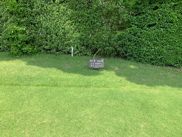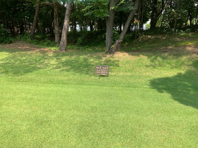 2番523yロングは、ドライバーはまずまず。25度のuでのセカンドは右ラフへ。9アイアンで奥のカラーへ。パターで打つも3パンチ。ボギーとなる。素晴らしいアプからK.Tさんがパー奪取。