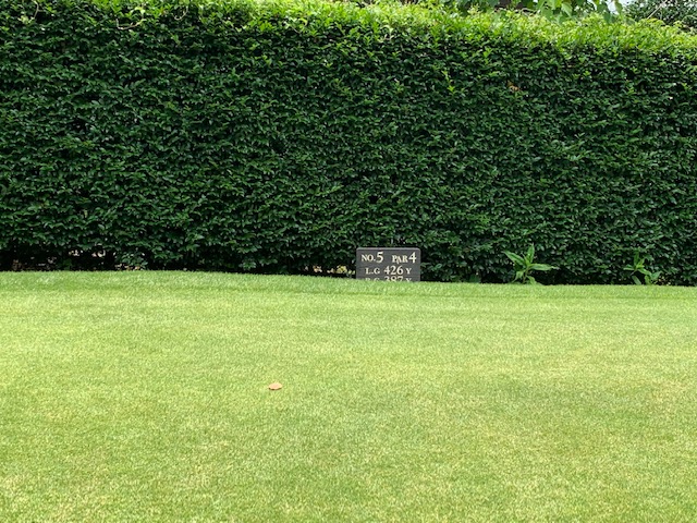 5番426yミドルは、ドライバーはフェアウェイへ。3wで打つもデカい。寄らず入らず。