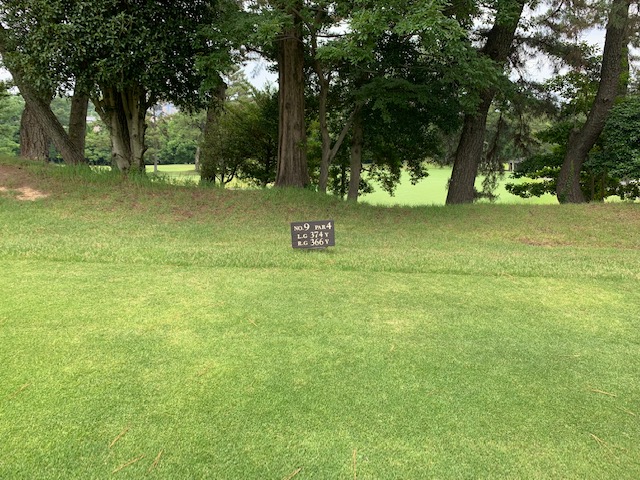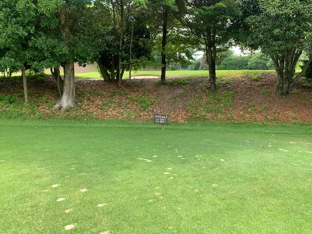 8番398y左ドッグのミドルは、ドライバーはフェードでナイス位置へ。7アイアンで打つも左のバンカーイン。出ただけ。やっとのボギー。