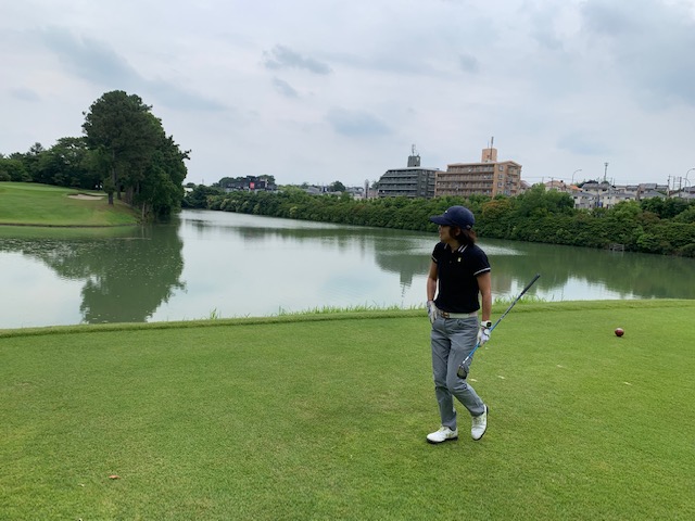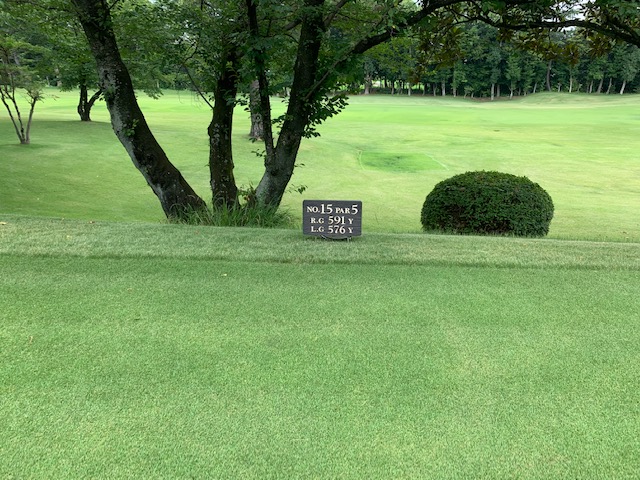 15番591yと長いロングは、ドライバーは引っ掛かり木に当たり下へ。5アイアンでフェアウェイへ。3wで残り60yへ。4打目がショボ。5オンのダボ。見事なアプからK.Tさんがパー奪取。