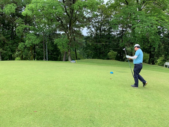 5番153yショートは、8アイアンでピン手前4mに1オン。無難にパー。同じく8アイアンでピン奥5mに1オンのJ.Oさんも無難にパー。見事なアプでM.Cさんもパーゲット。
