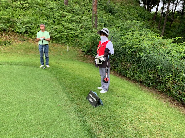 10番523yロングは、ドライバーはナイス。3w、PWで4mに3オン。残念パー。S.Mさんも3オンから残念パー。